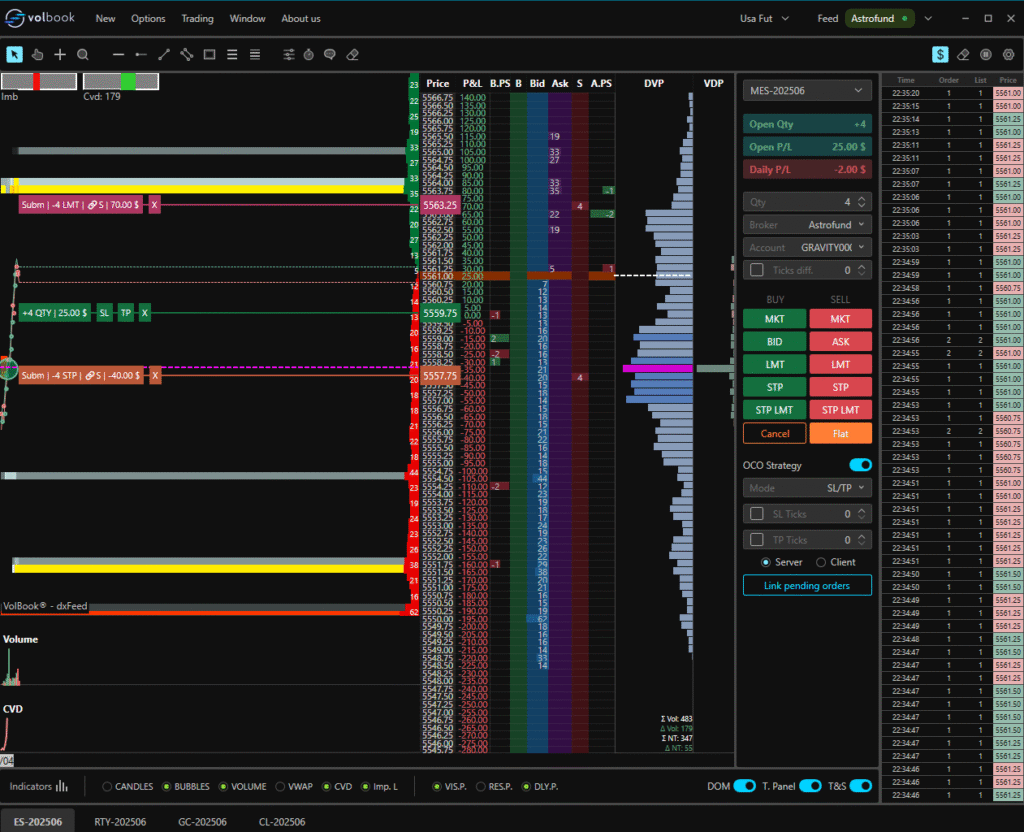 PRO-TIP: After your platform is connected, download the “Workspace for USA Futures” from your Astrofund dashboard to use the custom workspace designed to load best with the Futures offerings within VolBook.