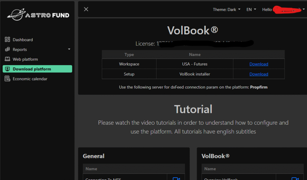 You will find your license and download links directly in your Astrofund Trade Desk dashboard.