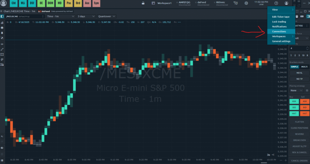 In Quantower, right click your control center and click on the Connections tab located in the upper right corner of the platform.